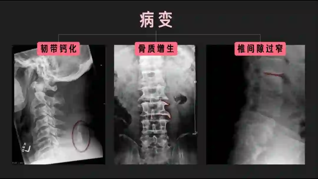 不论颈椎、腰椎,曲度变直都可能伴随其他病变,比如韧带钙化、骨质增生、椎间隙过窄。