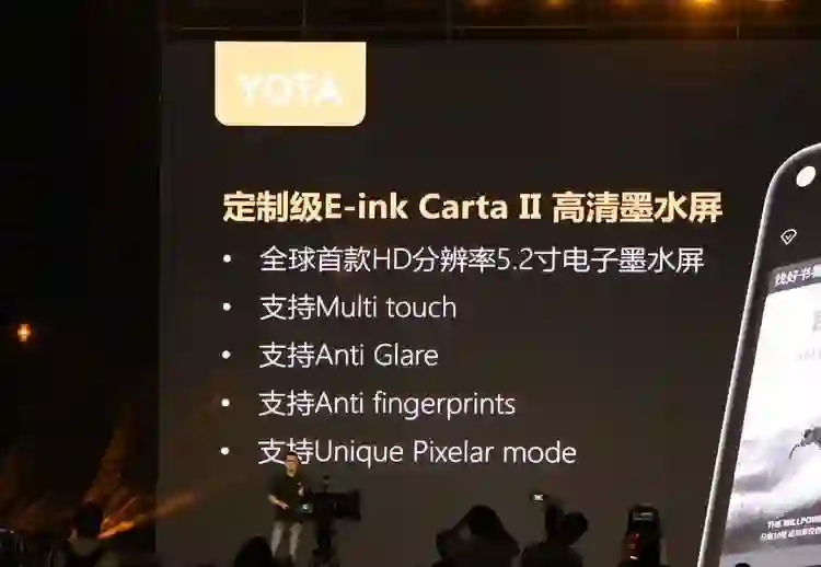 电子墨水屏技术上,YOTA3 墨水屏通过 AG glass 防眩光、AF Coating 防指纹工艺处理,强光下无反光不闪烁不伤眼,手指触摸不留痕,阅读更清晰度比上代产品更提升 4 倍。此外,YOTA3 正面彩屏 AMOLED 拥有全新定制的护眼模式,有效降低蓝光辐射。(来源:极客公园)