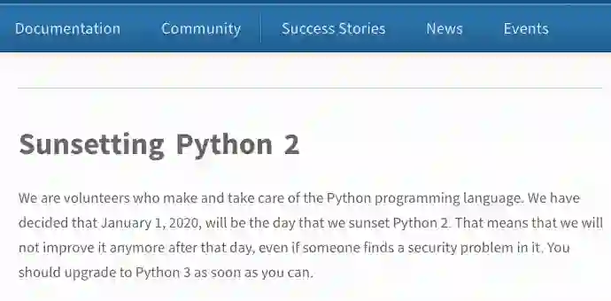 我们是开发和维护 Python 编程语言的志愿者。我们已经决定 2020 年 1 月 1 日将是结束支持 Python 2 的日子。这意味着,即使有人发现 Python 2 中的安全问题,我们也不会在那天之后再改进它。您应该尽快升级到 Python3。