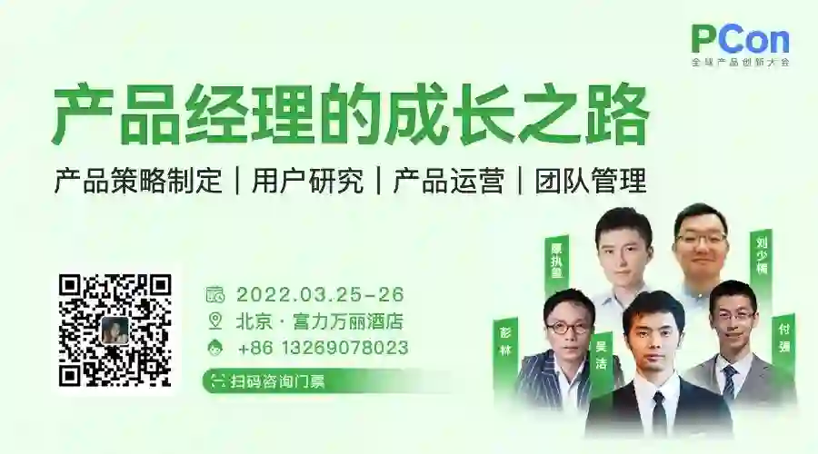 PCon 全球产品创新大会将于 2022 年 3 月 25-26 日 落地北京,来自 Google、小米、字节跳动、芒果 TV、阿里巴巴、Soul、小罐茶、爱奇艺、钉钉等企业的产品专家,齐聚一堂,分享各自在产品创新、产品运营、团队成长等方面的宝贵经验,期待你的参与学习。