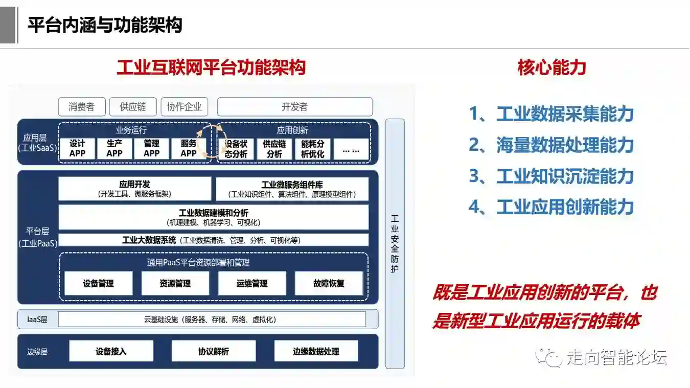 刘默主任首先为大家介绍了工业互联网产业联盟,分享了工业互联网平台发展演进的历程,详细分享了平台功能架构与技术体系,指出工业互联网平台既是工业应用创新的平台,也是新型工业应用运行的载体。