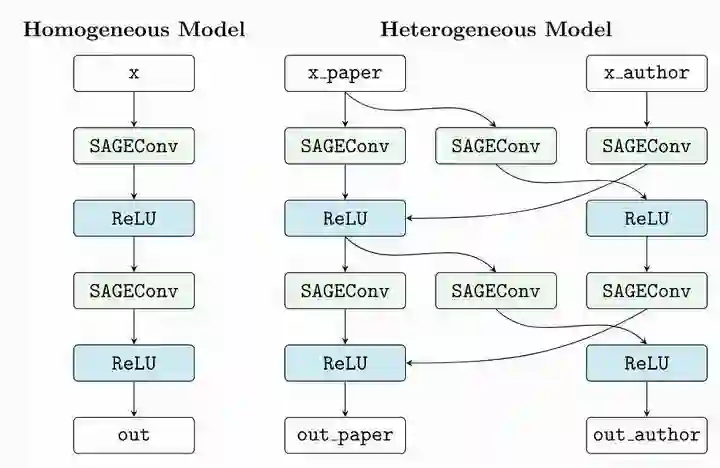 PyG可以通过torch_geometric.nn.to_hetero(),或者torch_geometric.nn.to_hetero_with_bases()将一个简单图神经网络转换成异质图的形式