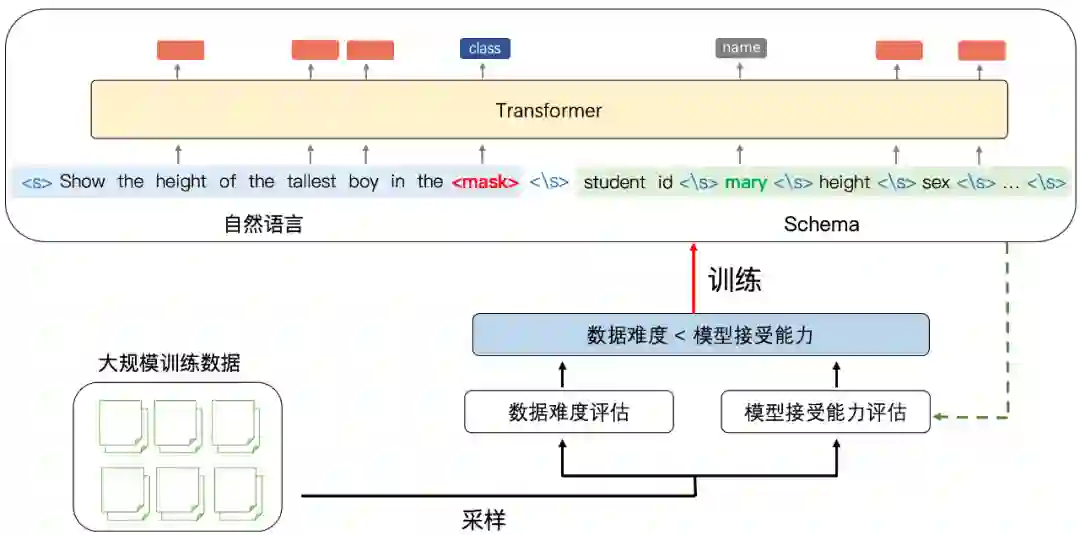 :评估当前数据的难易程度,设置 d = |I|,其中 d 代表困难程度,I 代表预训练模型的输入(包含自然语言 + 表格模式),即假设输入的问题长度和模式长度越长,最终可能生成的 SQL 语句更加复杂,对应当前数据难度越高;