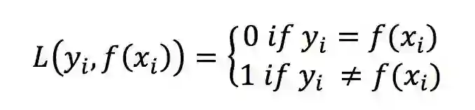 0-1 loss是最原始的loss,它直接比较输出值与输入值是否相等,对于样本i,它的loss等于: