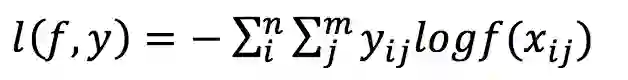 n对应于样本数量,m是类别数量,yij 表示第i个样本属于分类j的标签,它是0或者1。对于单分类任务,只有一个分类的标签非零。f(xij) 表示的是样本i预测为j分类的概率。loss的大小完全取决于分类为正确标签那一类的概率,当所有的样本都分类正确时,loss=0,否则大于0。