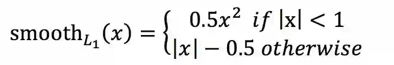 在x比较小时,上式等价于L2 loss,保持平滑。在x比较大时,上式等价于L1 loss,可以限制数值的大小。