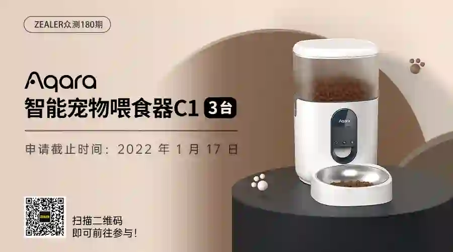快过年了!家里的毛孩子没人给喂食咋办?别担心!本期 ZEALER 众测新品——Aqara 智能宠物喂食器 C1,帮你智能喂食!可在 App 设定喂食计划,远程一键加餐,主人出门更放心;双重供电系统,断网断电绝不断粮;支持智能联动,随时随地查看宠物吃饭情况…扫上方二维码或戳左下角「阅读原文」即可申请免费试用。