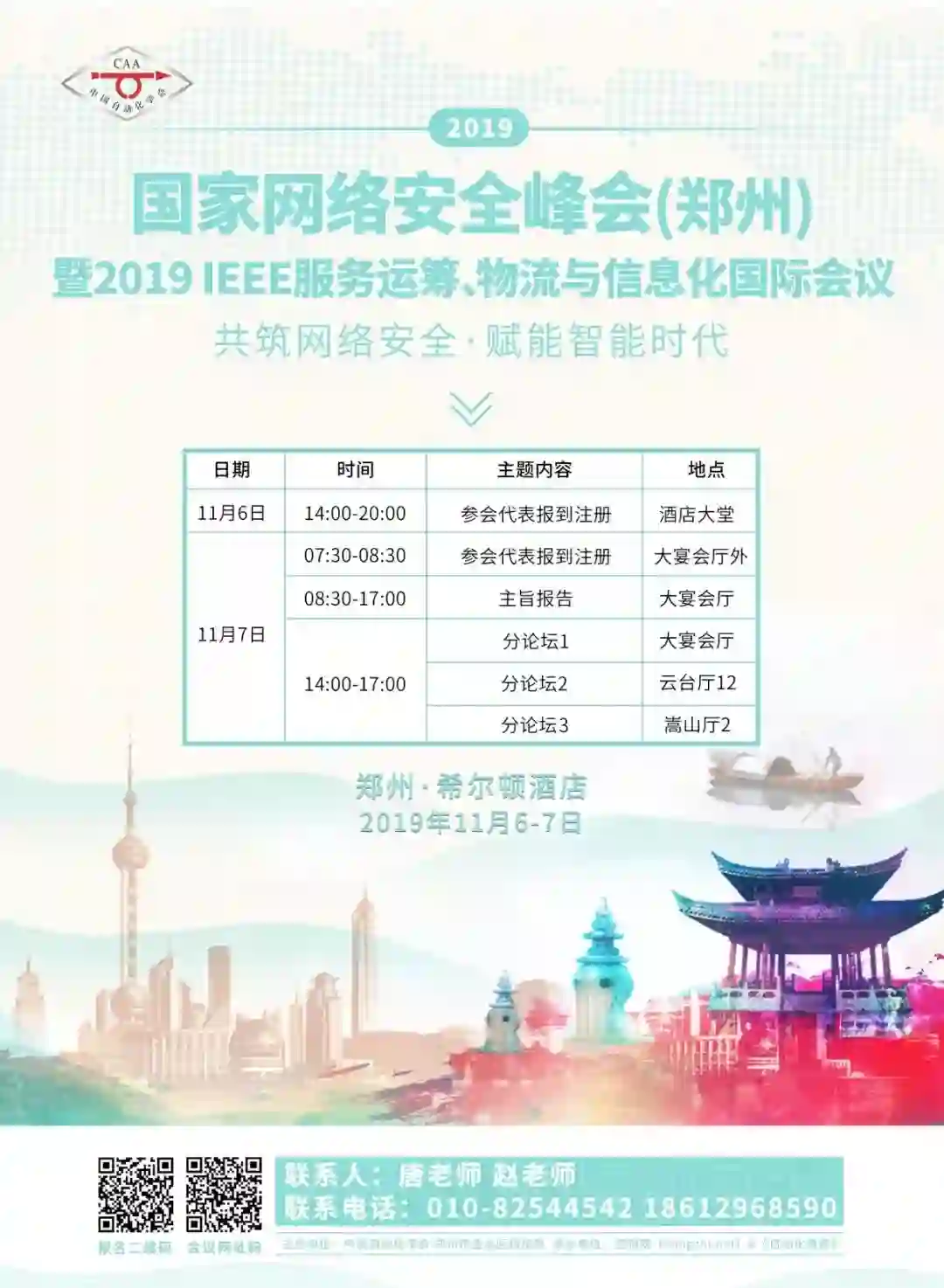 请登录会议网址或扫描二维码下载《2019国家网络安全峰会(郑州)注册表》发送至caa@ia.ac.cn完成注册。