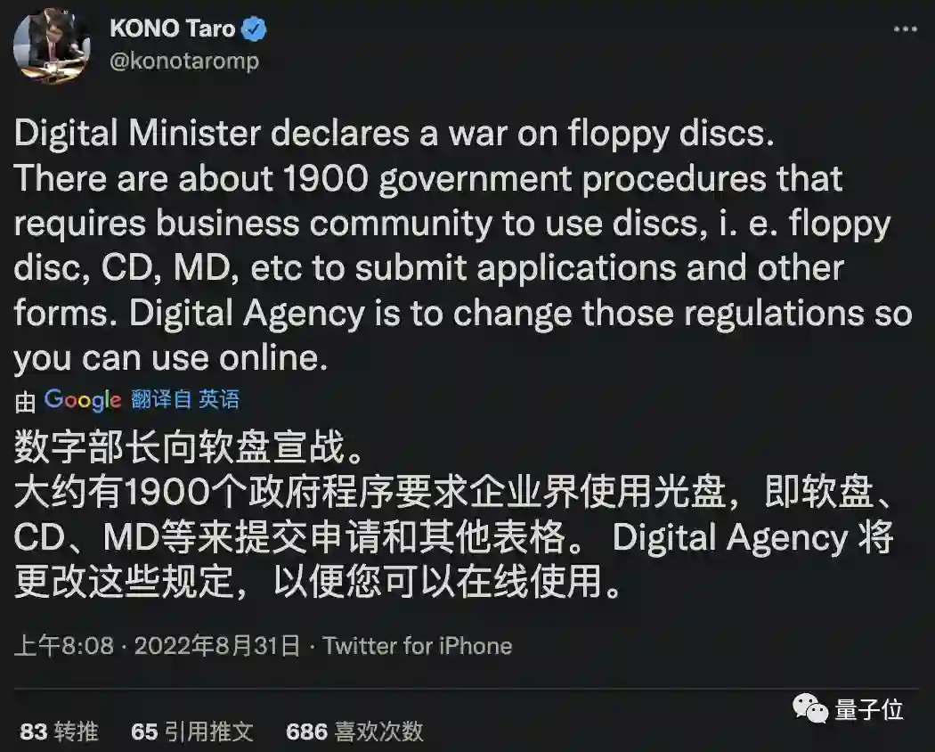 该国数字大臣河野太郎在推特上公开表示:
