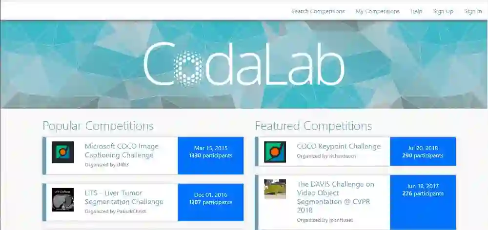 Codalab 是一个基于 web 端的开源平台,平台上的研究人员、开发人员以及数据科学家互相合作,以推进使用机器学习和高级计算的研究领域的发展。CodaLab 通过其在线社区解决数据导向研究领域的很多常见问题,人们可以在该社区共享 worksheets 并参与竞赛。你既可以参加现有竞赛,也可以举办新的竞赛。