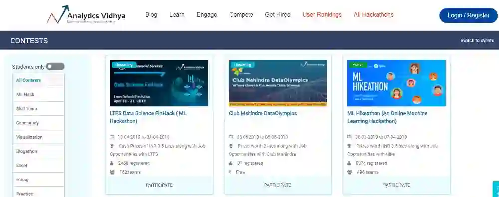 Analytics Vidhya:https://datahack.analyticsvidhya.com/?utm_source=main-logo