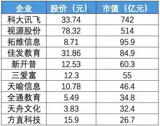 在现有的这类主要玩家中,市值超过 100 亿元的仅仅有科大讯飞和视源股份。因此,这一赛道的特点是:缺乏足够的头部,主要以中小企业为主,行业集中度低。且头部公司和互联网大公司的体量相比,规模差距可以一眼辨之。