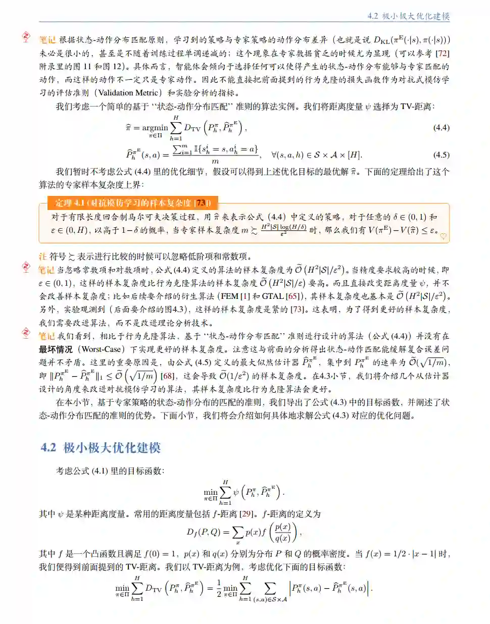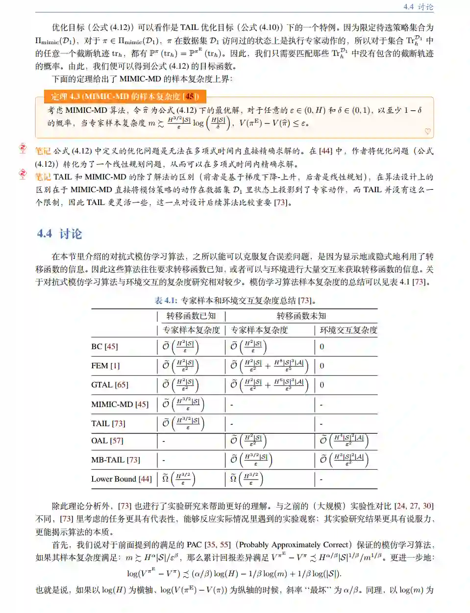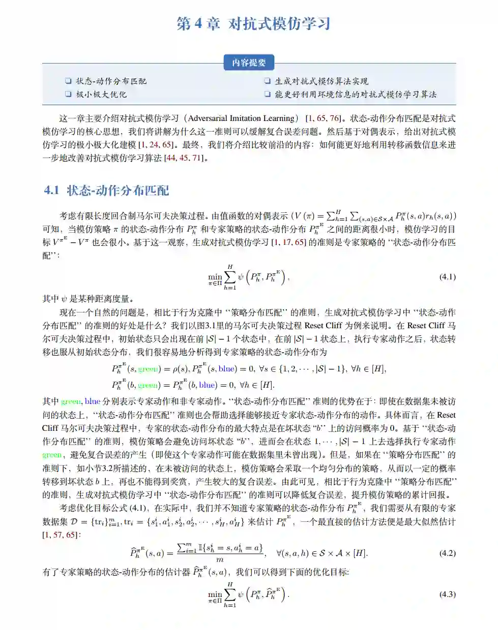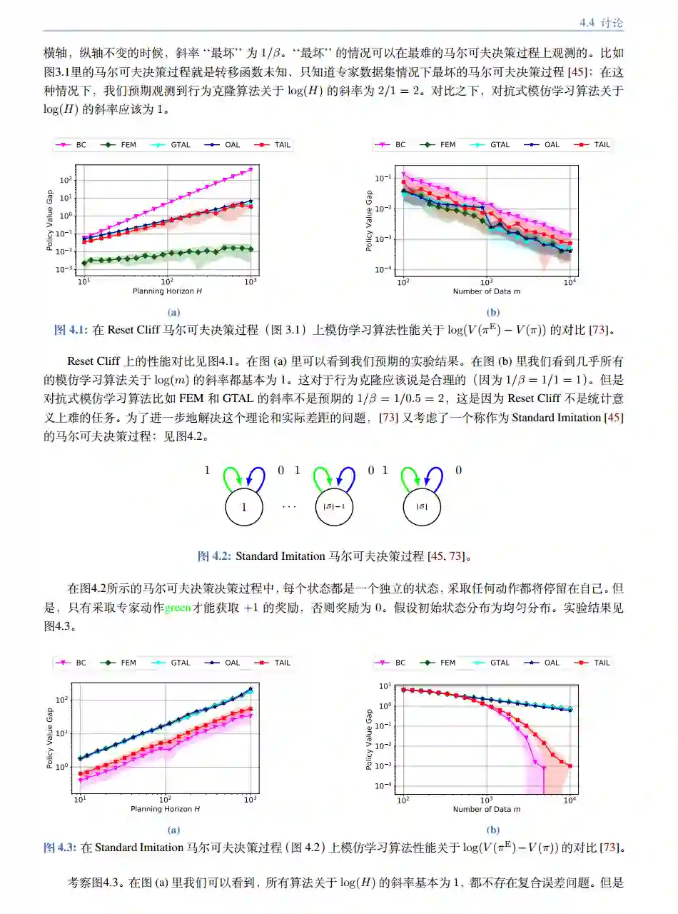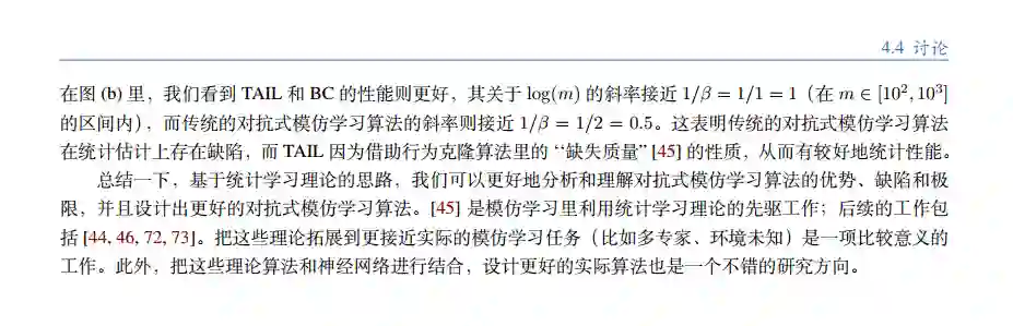 模仿学习,是一种从专家示例中进行学习的方法。这里专家示例指的是由最优(或者次优)策略采集到的状态-动作序列,智能体便是通过模仿专家示例来学习策略。模仿学习主要包含两大类算法框架:行为克隆和对抗式模仿学习。基于这两种算法框架,研究者们提出了各种各样的模仿学习算法,在实验中取得了很好的效果。尽管已经有很多对模仿学习算法的实验研究,关于模仿学习算法的理论分析直到最近才被逐步建立和完善。这些理论结果很好地解释了算法的实验现象,并且对今后的算法设计也有启发。
