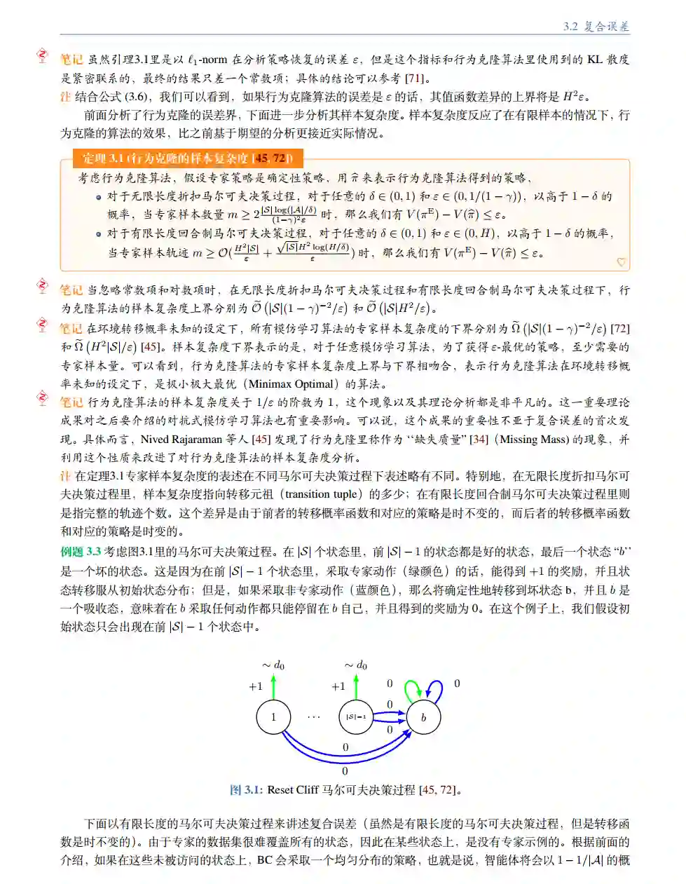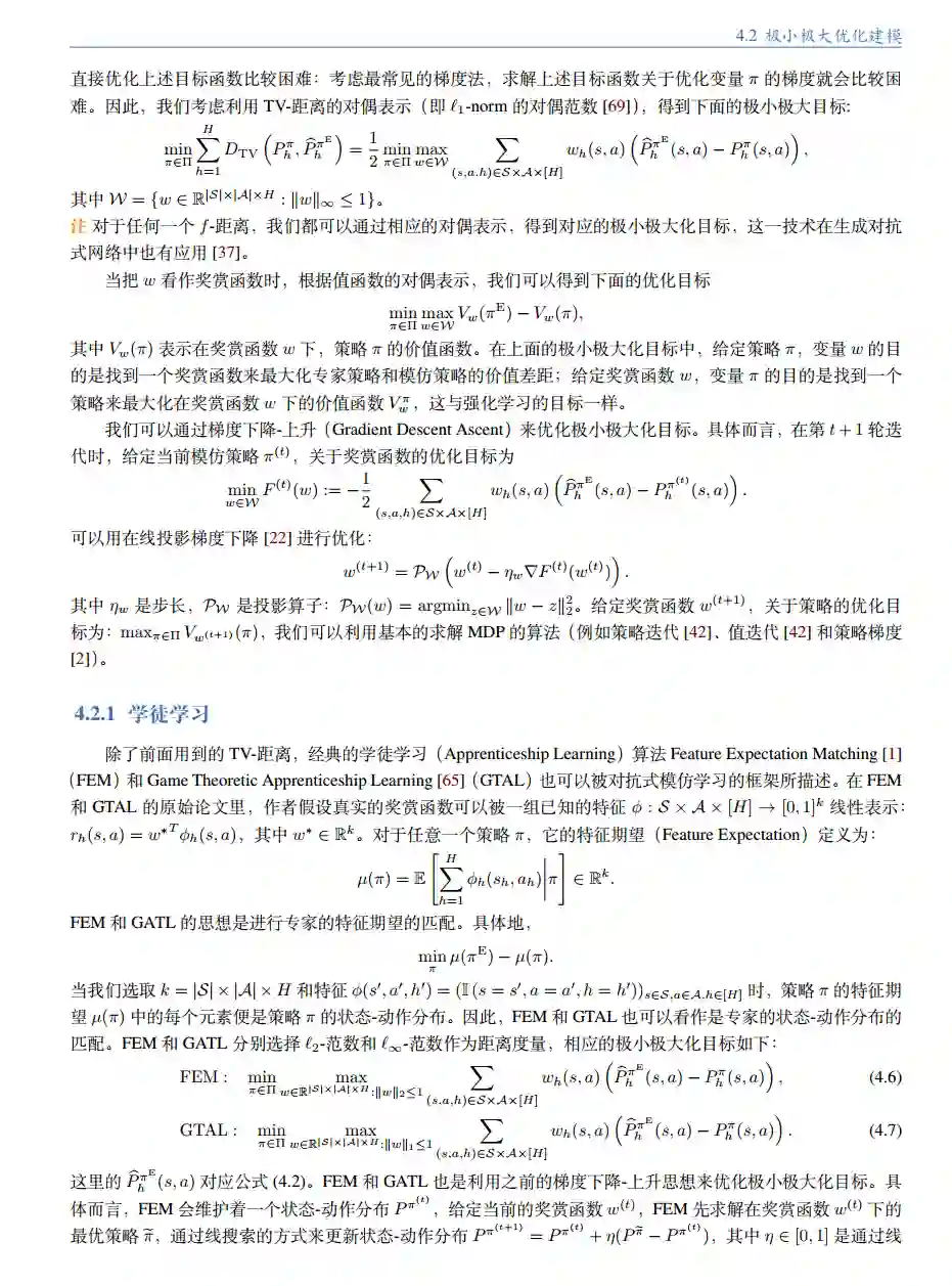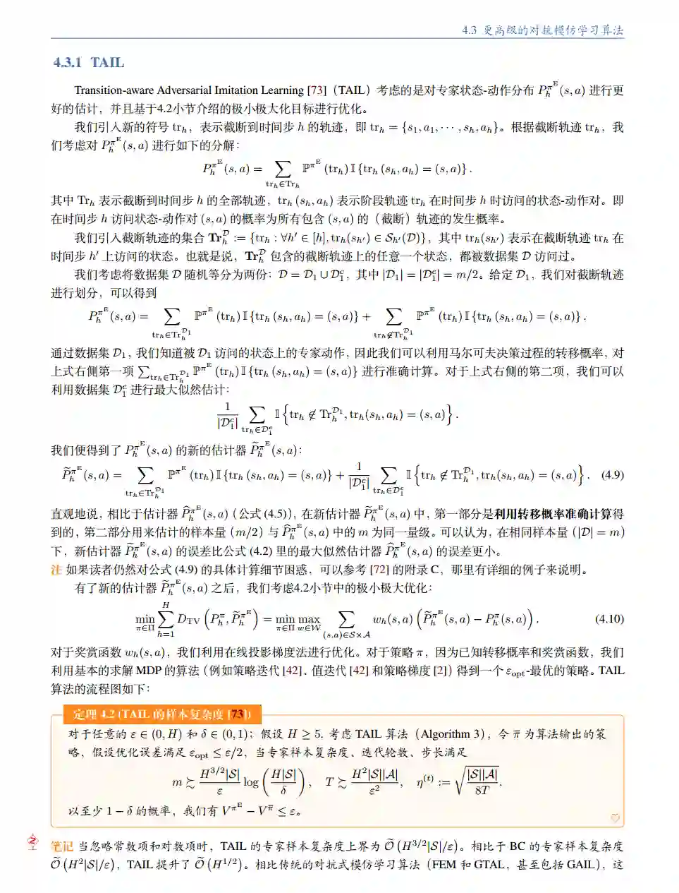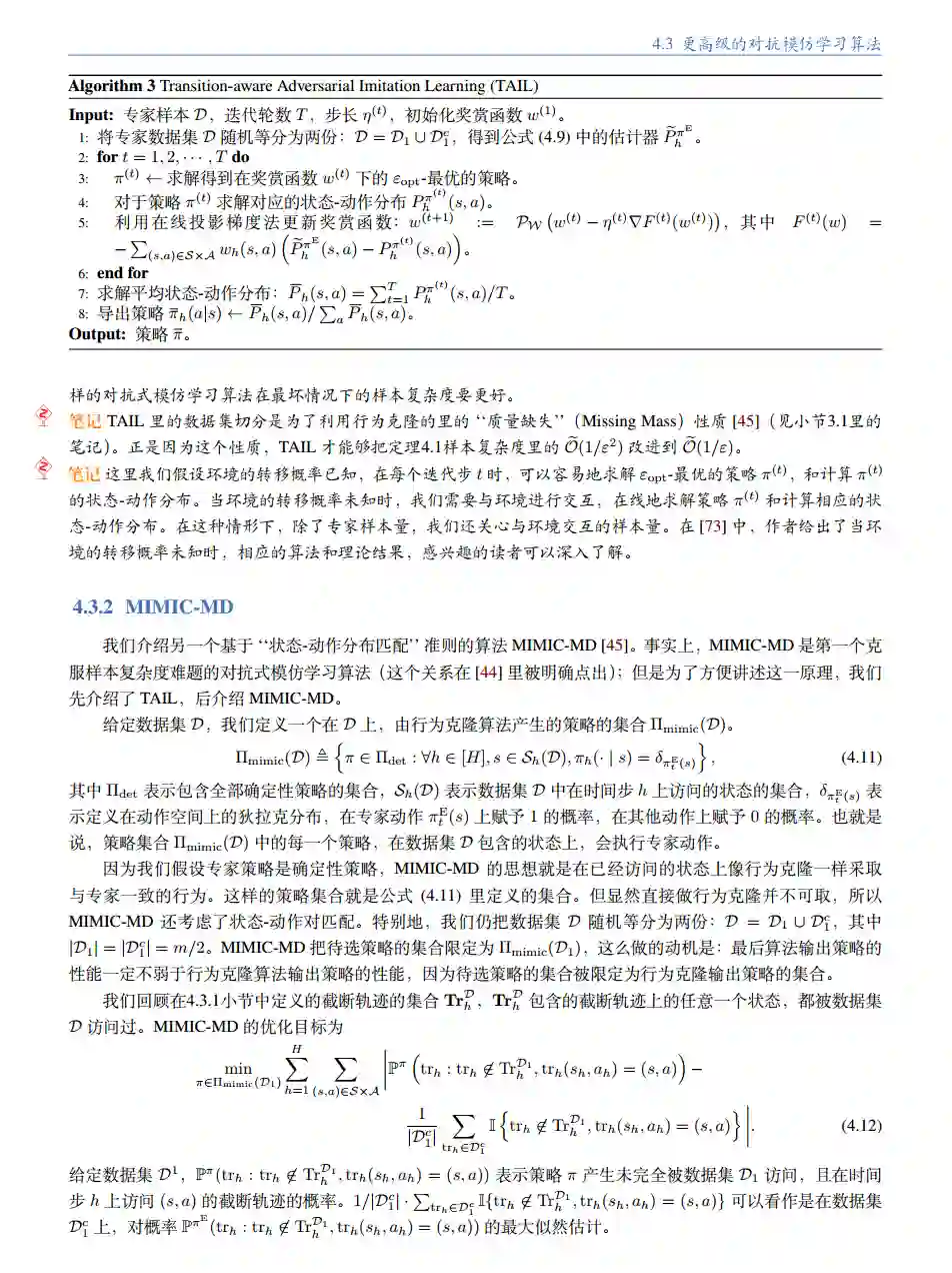 模仿学习,是一种从专家示例中进行学习的方法。这里专家示例指的是由最优(或者次优)策略采集到的状态-动作序列,智能体便是通过模仿专家示例来学习策略。模仿学习主要包含两大类算法框架:行为克隆和对抗式模仿学习。基于这两种算法框架,研究者们提出了各种各样的模仿学习算法,在实验中取得了很好的效果。尽管已经有很多对模仿学习算法的实验研究,关于模仿学习算法的理论分析直到最近才被逐步建立和完善。这些理论结果很好地解释了算法的实验现象,并且对今后的算法设计也有启发。