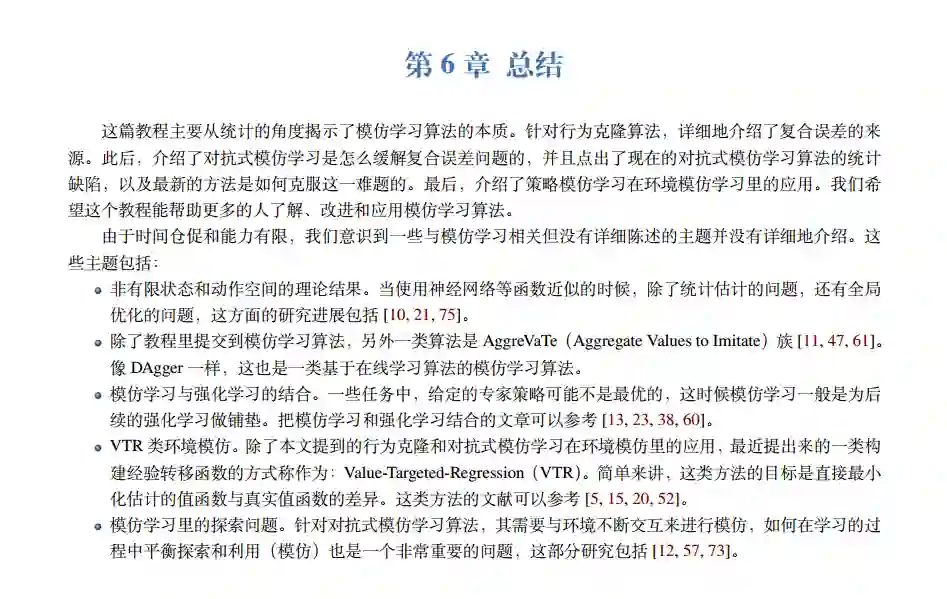模仿学习简要教程着重从统计学习理论的角度来介绍模仿学习算法,能使读者对模仿学习算法有深刻的理解,使读者能够通过借助理论来分析已有的实验结果、并且设计更好的算法。