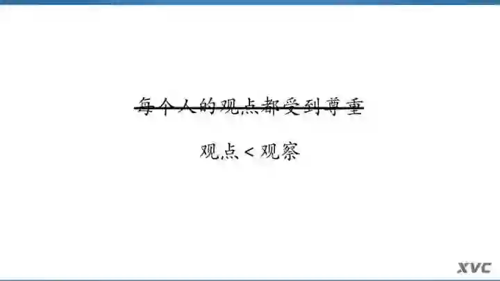 “集体的智慧”是符合人性的,这个词听着就顺耳,对吧。但是在XVC我们特别害怕这个东西。我们觉得,相比较之下,最低效的是集体思考,次之是一个人的独立思考,最高效的,是“一群人的独立思考”。