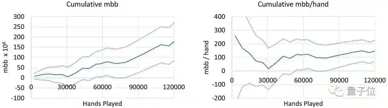 今年1月,在匹兹堡河流赌场举办了一场为期20天的Brains vs. AI比赛,Libratus在一对一、无限注的德扑人机大战中,击败四位顶级人类玩家,累计赢得176.6万美元筹码。按照德扑的术语,Libratus与人类高手的差距是147大盲注/千手(mbb/hand),也就是场均14.7个大盲注。