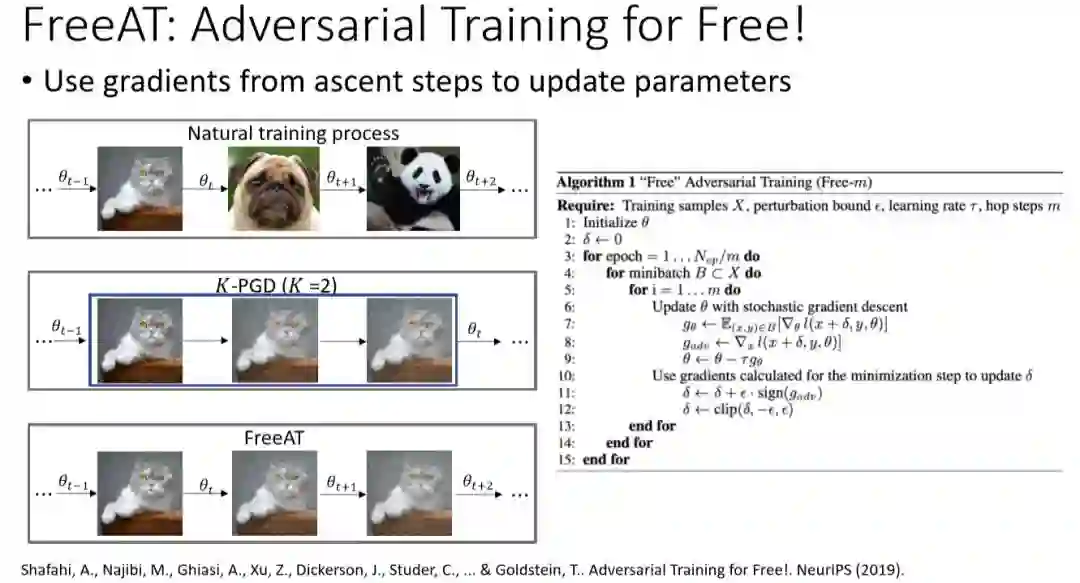 7. Shafahi, A., Najibi, M., Ghiasi, A., Xu, Z., Dickerson, J., Studer, C., ... & Goldstein, T.. Adversarial Training for Free!. NeurIPS(2019).