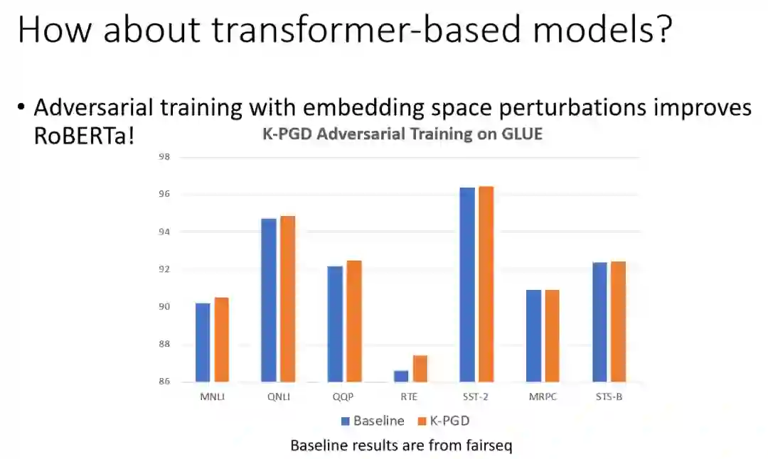 大家好,今天介绍的是暑期我在微软实习期间主要做的工作,关于自然语言模型对抗训练的问题,也就是使用更好的对抗训练的方式增强transformer-based的模型在自然语言理解领域的效果。这项工作由我和我的几位mentor,导师以及manager一起完成的。