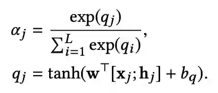 我们计算 Attention 操作在关系层次链的每一层,从而得到每一层文本相关的关系表示,具体公式如下: