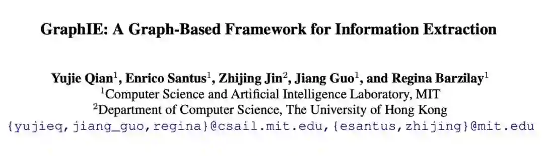 本文介绍 GraphIE,一个在图上运行的信息抽取框架。该算法通过图形卷积网络在连接的节点之间传播信息,利用来改进单词级别的预测从,而生成更丰富的表示。本文评估了三个不同的任务:文本,社交媒体和视觉信息提取,结果一致地显示 GraphIE 优于最先进的信息抽取模型。