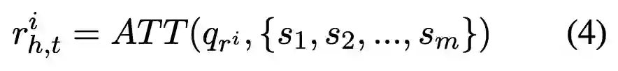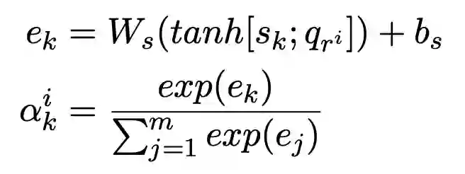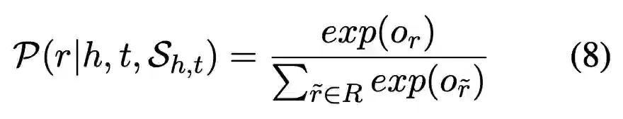考虑到不同层次的关系对最终实例表示的贡献的不同,对每一层关系表示使用 Attention 操作,其中使用作为 score-function,表示输入关系 r 和该层预测关系 r’ 之间的匹配层度,计算公式如下: