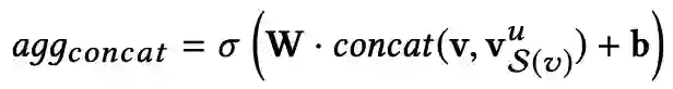 4. 文中提出三种聚合方法来聚合 item v 的表示和它邻接节点的表示 (S(v) 是为了保持每批次的计算模式固定且更高效,从 N(v) 中采样得到的)。