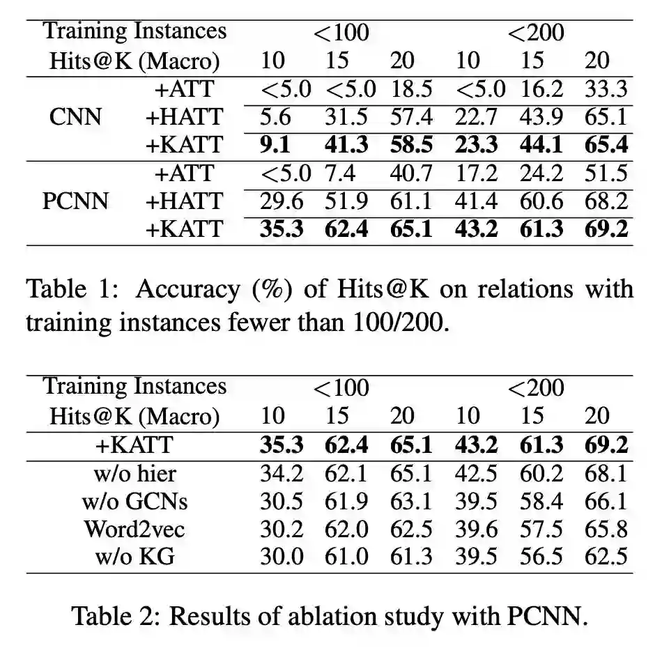 本文针对长尾关系抽取提出了一种利用 KG embedding 和 GCNs 学习关系知识以及使用注意力机制利用学习得到的关系语义信息的模型。