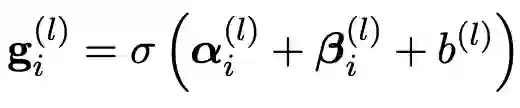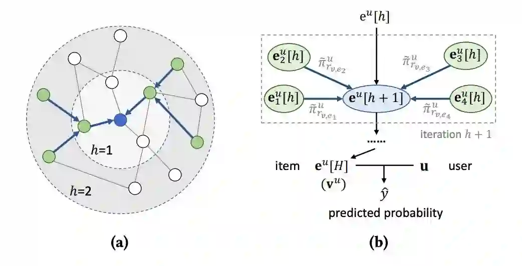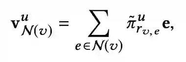 3. 通过对周围 entity e 施加不同权重,计算 item v 拓扑机构表示。其中,N(v) 是 v 的邻接节点。