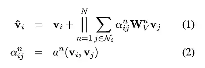 Graph Attention 的计算由各 head 的输入加权拼接实现,过程如下: