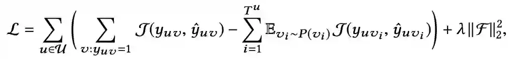 5. 论文采用 hinge loss,考虑到算法的效率,为每个样本产生 T^u 个负样本,且样本满足均匀分布。