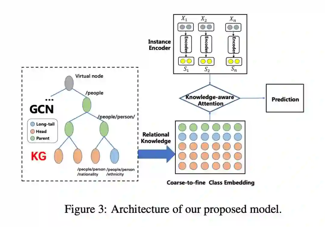 现有的利用远程监督进行实体关系抽取的方法大多关注于如何对训练数据进行降噪,从而提升模型效果,而忽略了长尾关系的抽取,使得长尾关系抽取效果极差。但是长尾关系的存在是不可忽略的,在 NYT 数据集中,大约 70% 的关系属于长尾关系(即该关系训练实例数量较少,少于 1000)。如何提高模型对长尾关系抽取效果是该篇论文主要出发点。