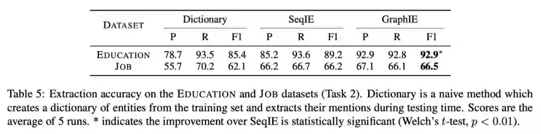 从 Twitter 语料库里构造了两个数据集 EDUCATION 和 JOB。实验结果如下。