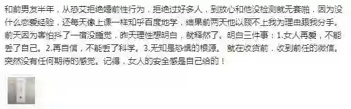 从购买产品后买家评价看,很多人购买该产品都是因为看到男/女朋友、妻子/丈夫、性伴侣某些症状、某些行为或自身不检点性行后对感染艾滋病的恐惧而购买,也有部分买家是为了显示对男/女朋友、丈夫/妻子的负责而购买。