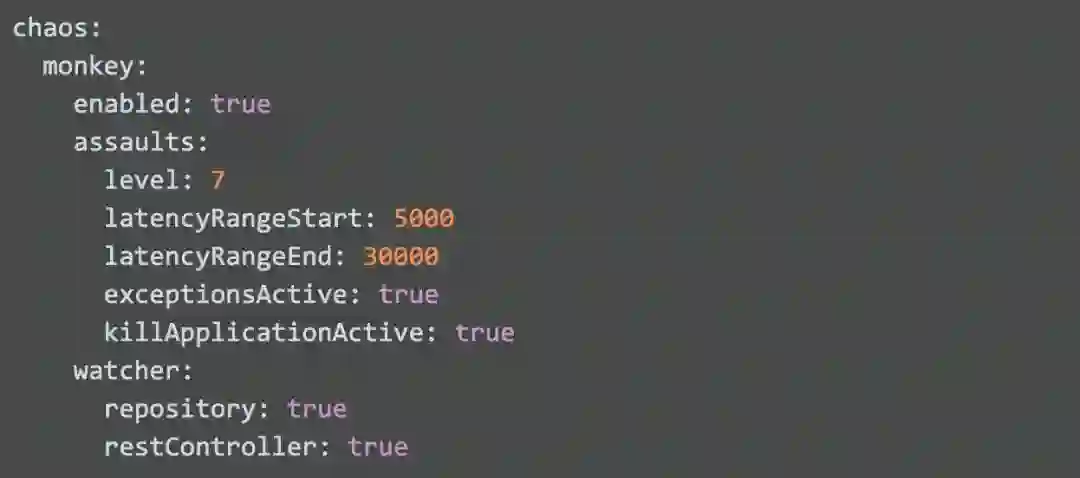在Spring Boot工程中,对需要进行试验的服务application.yml文件的Chaos Monkey进行配置:
