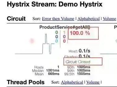 观察结果:部分请求被立刻拒绝,加速服务失败的判定,熔断器开启