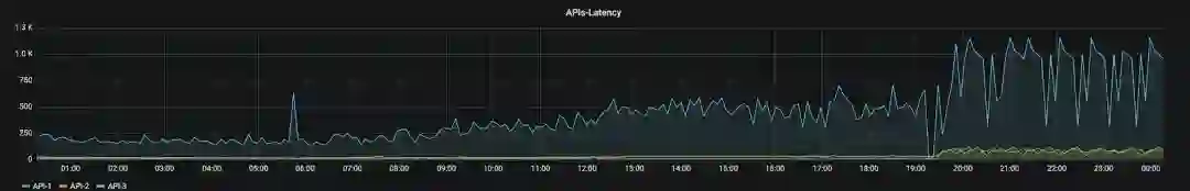 观察API延时:(API请求延时变化明显,API-3延时更加严重)