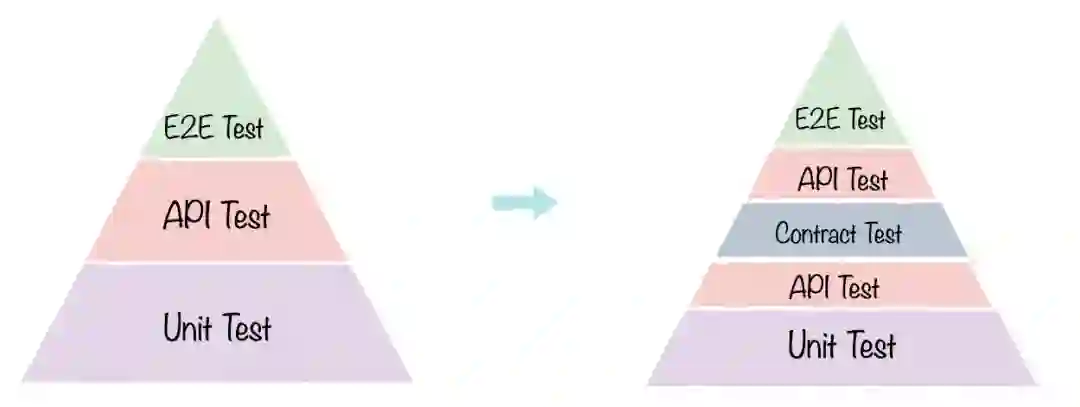 长久以来,“测试金字塔”都是敏捷开发团队保证项目交付质量的守则,而“测试金字塔”也确实从不同的维度涵盖了方法调用、业务逻辑、用户行为等方面。为了确保在进行复杂的调用和被调用时,服务之间能有一定程度上的一致性和快速反馈,我们会第一时间想到“契约测试”,“测试金字塔”也演化成了另一个样子。