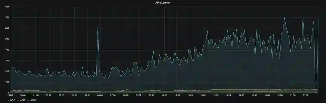 观察API延时基线:(可以看到API-1和API-2平均延时低于300ms,API-3在300ms-700ms之间)