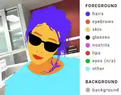 为了给机器学习流水线提供高质量的训练数据,谷歌标注了上万张照片,其中包含了各种各样丰富的前景(人物)姿势和背景内容。标注内容里包括了精确到像素的前景人物的图像结构,比如头发、眼镜、脖子、皮肤、嘴唇等等,各类背景则统一标注为「背景」,标注质量在人类标注员的交叉验证测试中取得了 98% 的 IOU。