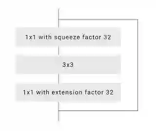 为了进一步提高速度,谷歌研究人员们优化了默认的残差网络瓶颈。在学术论文中,研究者们通常喜欢在网络中部把通道数缩减为 1/4 (比如,通过使用 64 个不同的卷积核把 256 个通道缩减为 64 个通道)。不过,谷歌的研究人员们认为他们可以更加激进地缩减通道,可以缩减为 1/16 甚至 1/32,而且并不会带来性能的大幅下降。