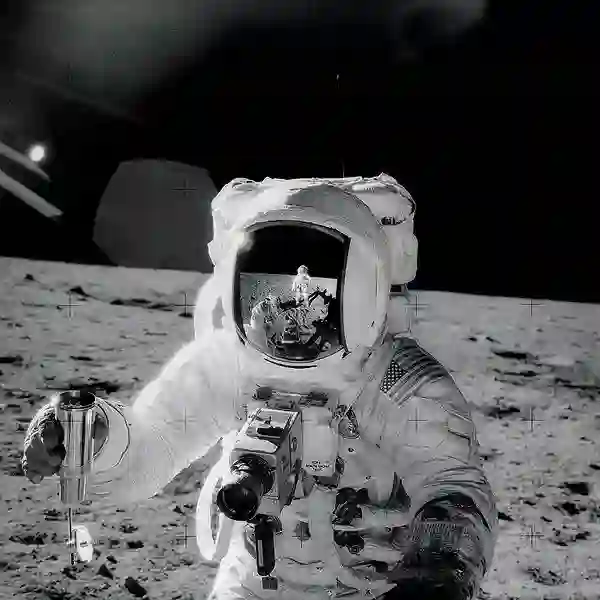 作为一名地质学家,他乘坐1969年11月14日发射的阿波罗12号飞船、也是世界上第2艘登陆月球的飞船,登上了月球,不仅成为第4个在月球上行走的人类,也是第一位在月球上行走的地质学家,曾为今天的月球地质学研究带回极其宝贵的样本——阿波罗12号飞船收集了35公斤的月球岩石和土壤带回月球。在两次月球漫步中,他在月球停留了31个小时。下图是阿兰•比恩在月球时的照片,一同进行月球行走的宇航员康拉德(Conrad)拍了这张照片,从阿兰•比恩的头盔上还能看到康拉德的身形。