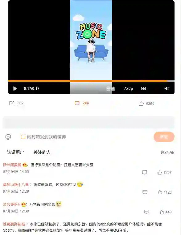 “讲真,第一次打开Music Zone时我人是蒙的,各种推荐入口已经够复杂的了,Music Zone相当于在APP里又藏了一个APP,我开始担心手机内存了”,一位QQ音乐用户在更新之后如是评论。