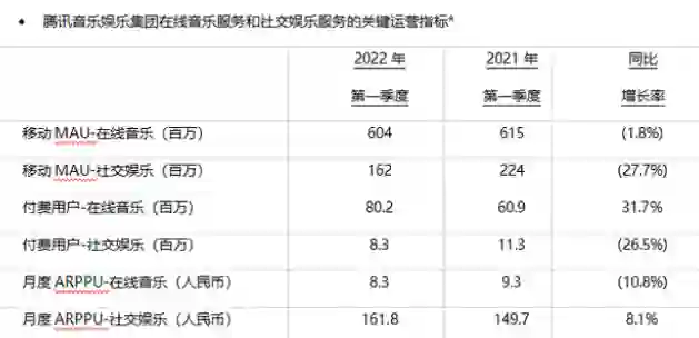 2022年第一季度,腾讯音乐娱乐集团的在线音乐服务月活用户为6.04亿。去年同期为6.15亿,同比下降1.8%;网易云音乐为1.82亿,去年同期为1.83亿,同比下降0.8%。
