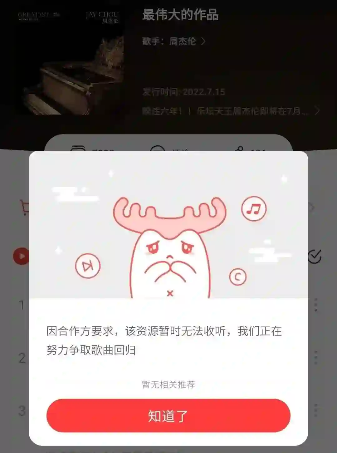 7月8日,QQ音乐开售新专数字版本才算扳回一城,目前已售出272万张。而网易云这边,因为过往恩怨无缘周杰伦,整张专辑全是灰色。