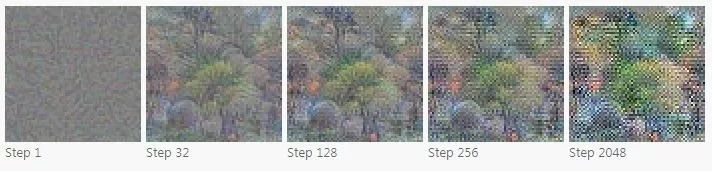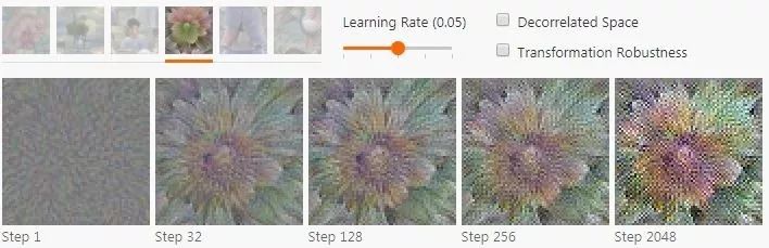 如前文所说,作者们此次使用的优化方法的思路很简单,但想要真的产生符合人类观察习惯的图像就需要很多的技巧和尝试了。直接对图像进行优化可能会产生一种神经网络的光学幻觉 —— 人眼看来是一副全是噪声、带有看不出意义的高频图样的图像,但网络却会有强烈的响应。即便仔细调整学习率,还是会得到明显的噪声。(下图学习率0.05)