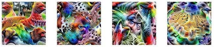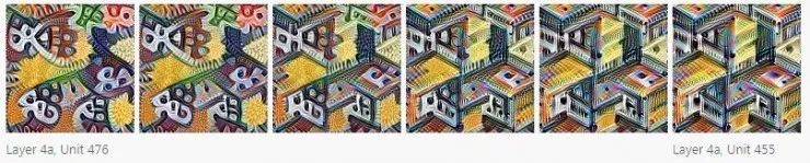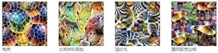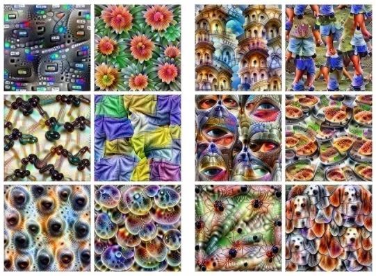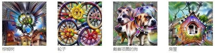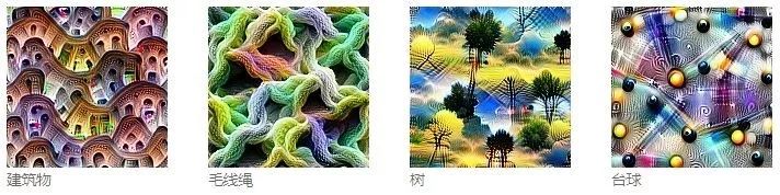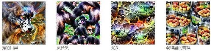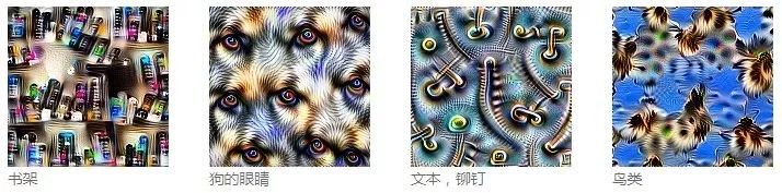 要理解网络中的完整一层,就可以用 DeepDream的目标,找到整个层觉得“有兴趣”的图像。