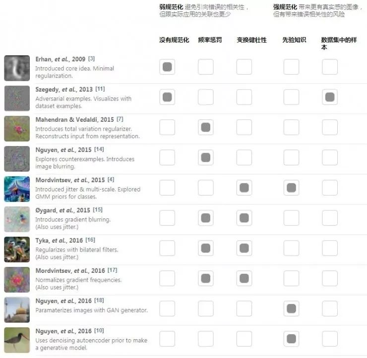 实际上,如果看看特征可视化方面最著名的论文,它们最主要的观点之一通常都是使用某种规范化方法。不同的研究者们尝试了许多不同的方法。
