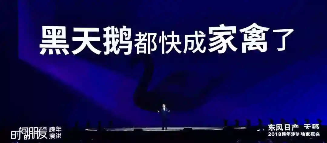 今年的跨年演讲,罗胖再次借用了黑天鹅这个意向。只不过他认为,因为2018年黑天鹅事件层出不穷,用黑天鹅已经解释不了环境的巨变,而是环境本身变了。黑天鹅都快成家禽了。