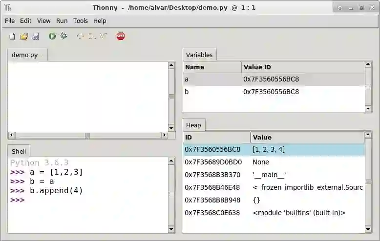 我在这篇文章中提及到的特性是创建 Thonny 的主要原因。很容易对函数调用和引用形成错误的理解,但传统的调试器并不能真正帮助减少混淆。